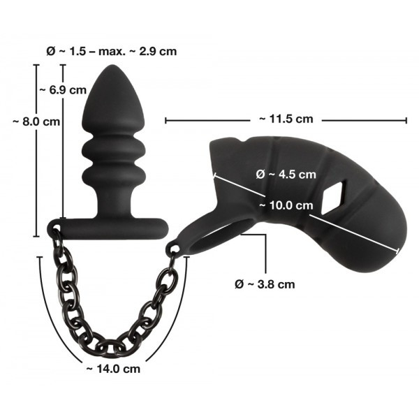 Пояс верности и пробка между собой соединены металлической цепью, которая придает изделию мега брутальный вид!